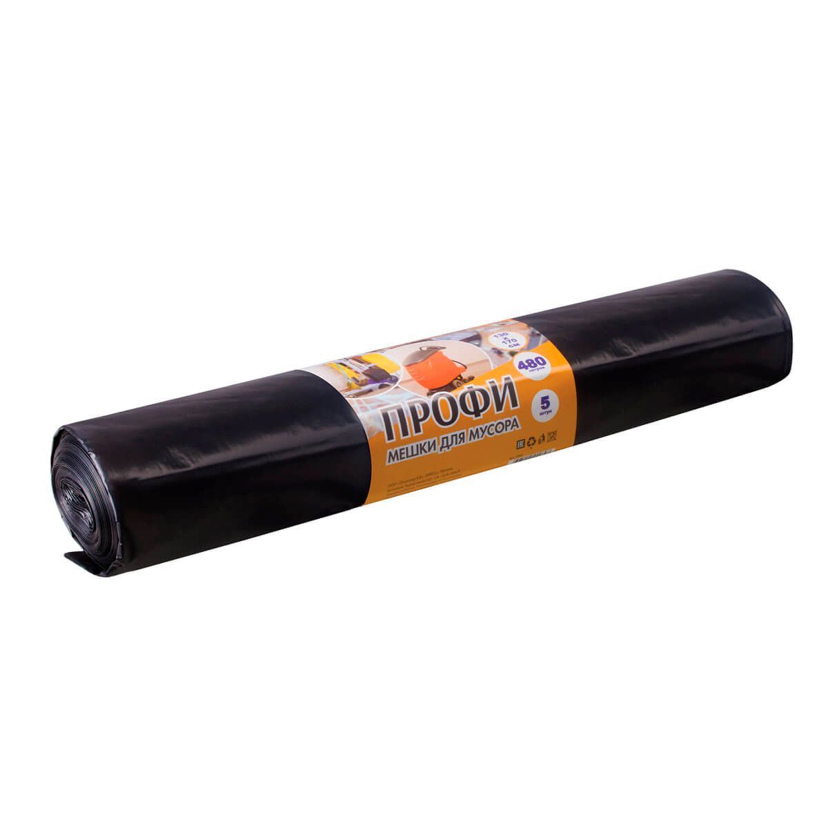 Мешки для мусора 480 л, черные, в рулоне 5 шт., ПВД, 65 мкм, 1700х1300 мм, Концепция Быта Профи, 603735