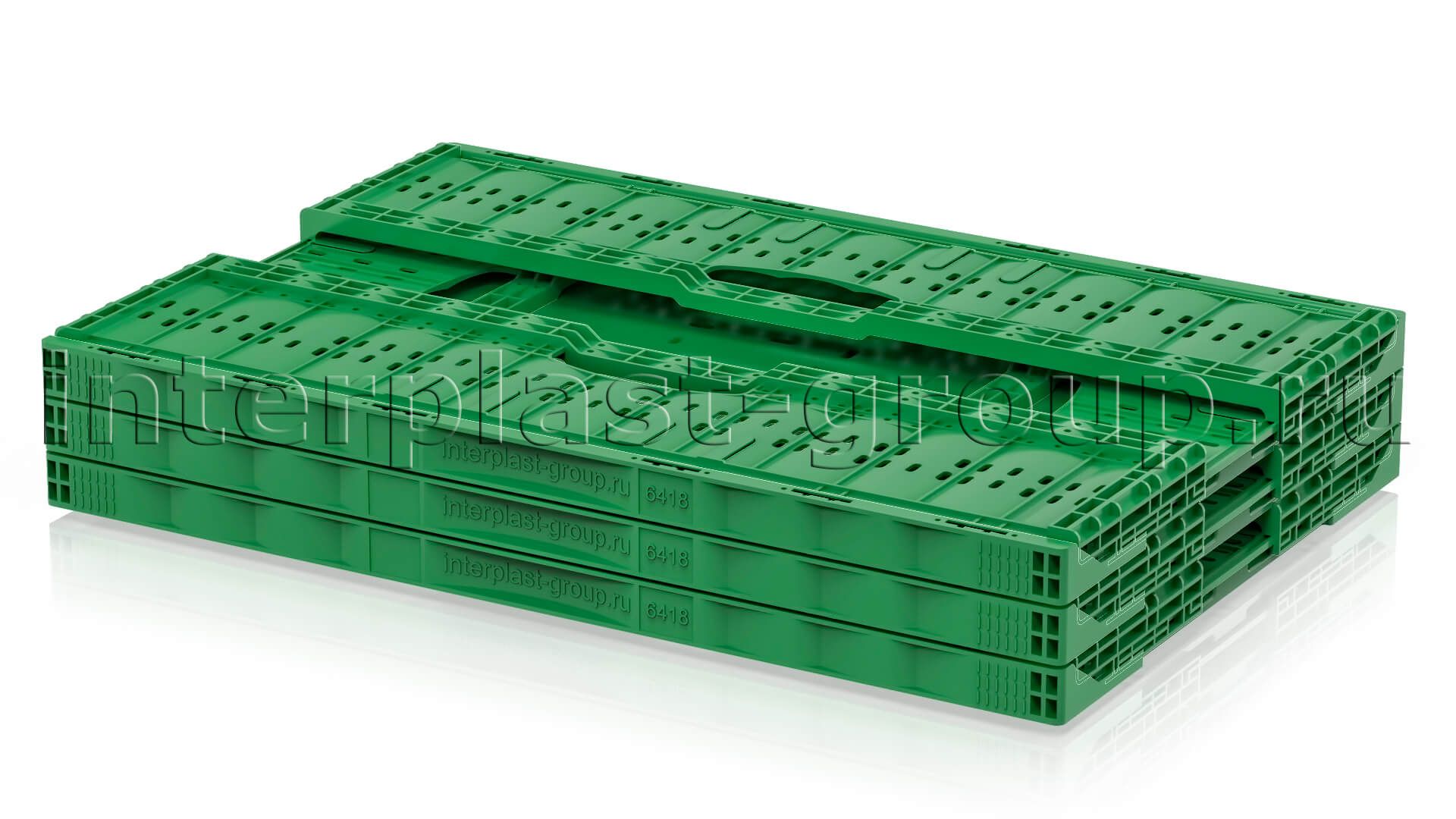 Складные ящики разработаны и спроектированы для хранения и перемещения плодо-овощных культур как внутри производства, так и между торговыми точками и складами. Благодаря функции складывания значительно экономят место при использовании в качестве возвратной тары. Перфорированные стенки обеспечивают сохранение свежести и сочность продуктов перфорации абсолютно на всех стадиях логистики. Штабелируются на паллетах 1200х1000 и 1200х800.