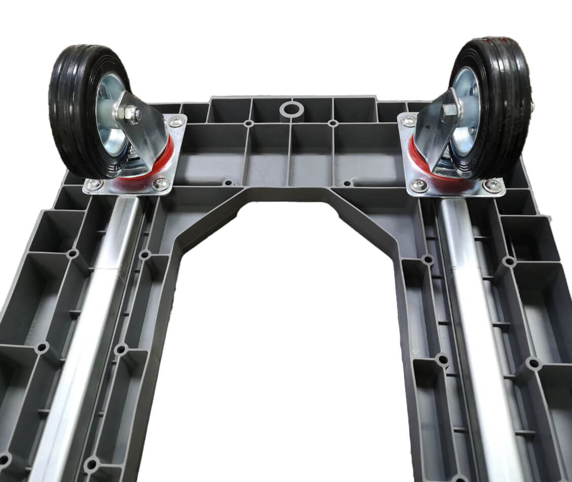 Помимо всех этих преимуществ, у нашей тележки есть специальное место (паз) для установки колес при хранении и транспортировке, что дает вам дополнительную гибкость в использовании.